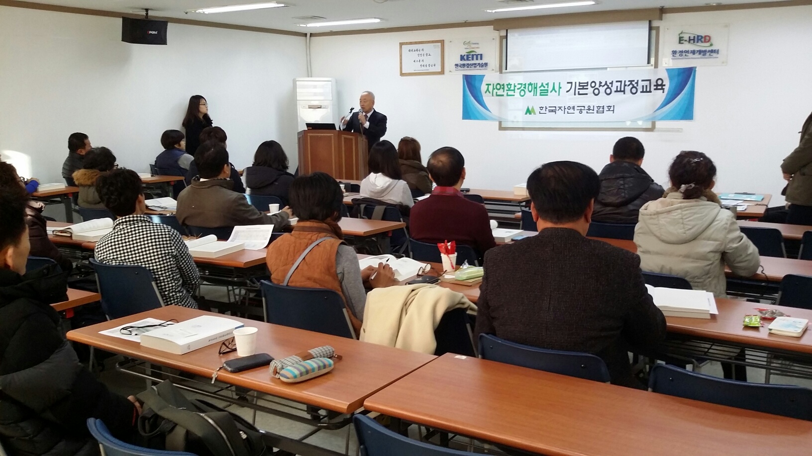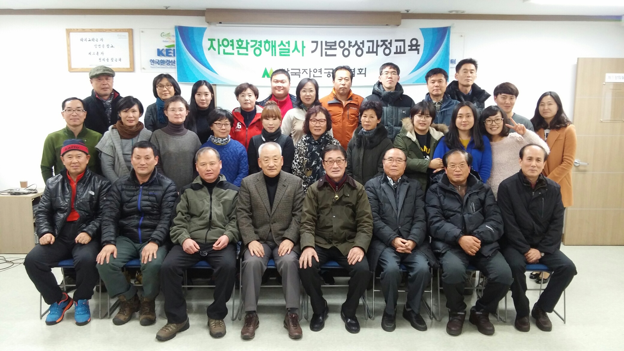지난 12월 7일부터 한국환경산업기술원 강당에서 실시된 제5기 자연환경해설사 기본과정 양성교육(이론강의)이 18일 끝나 2016년 1월 시연평가를 갖는다. 이번 교육생은 박찬규씨 등 25명이 참석했다.