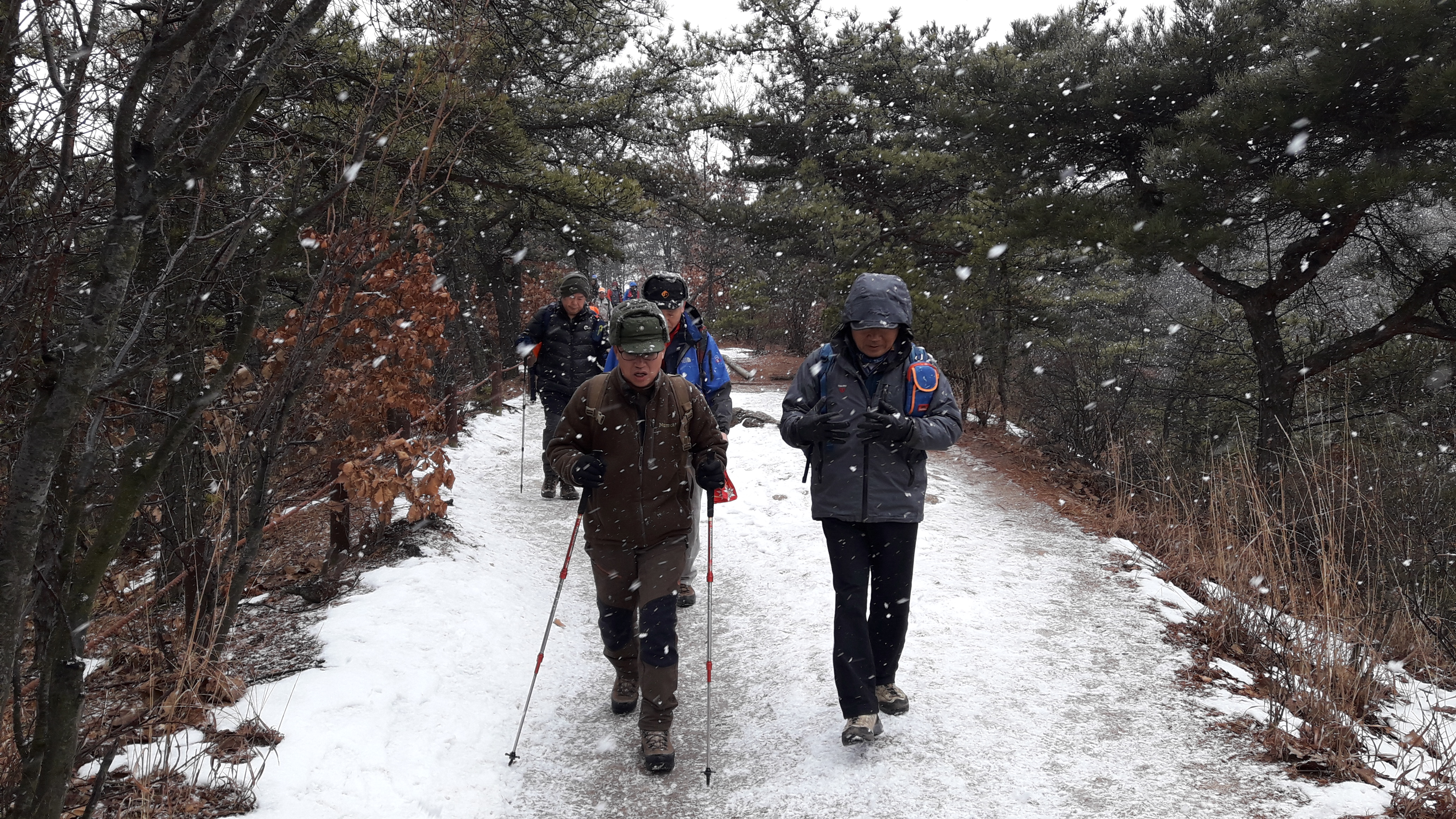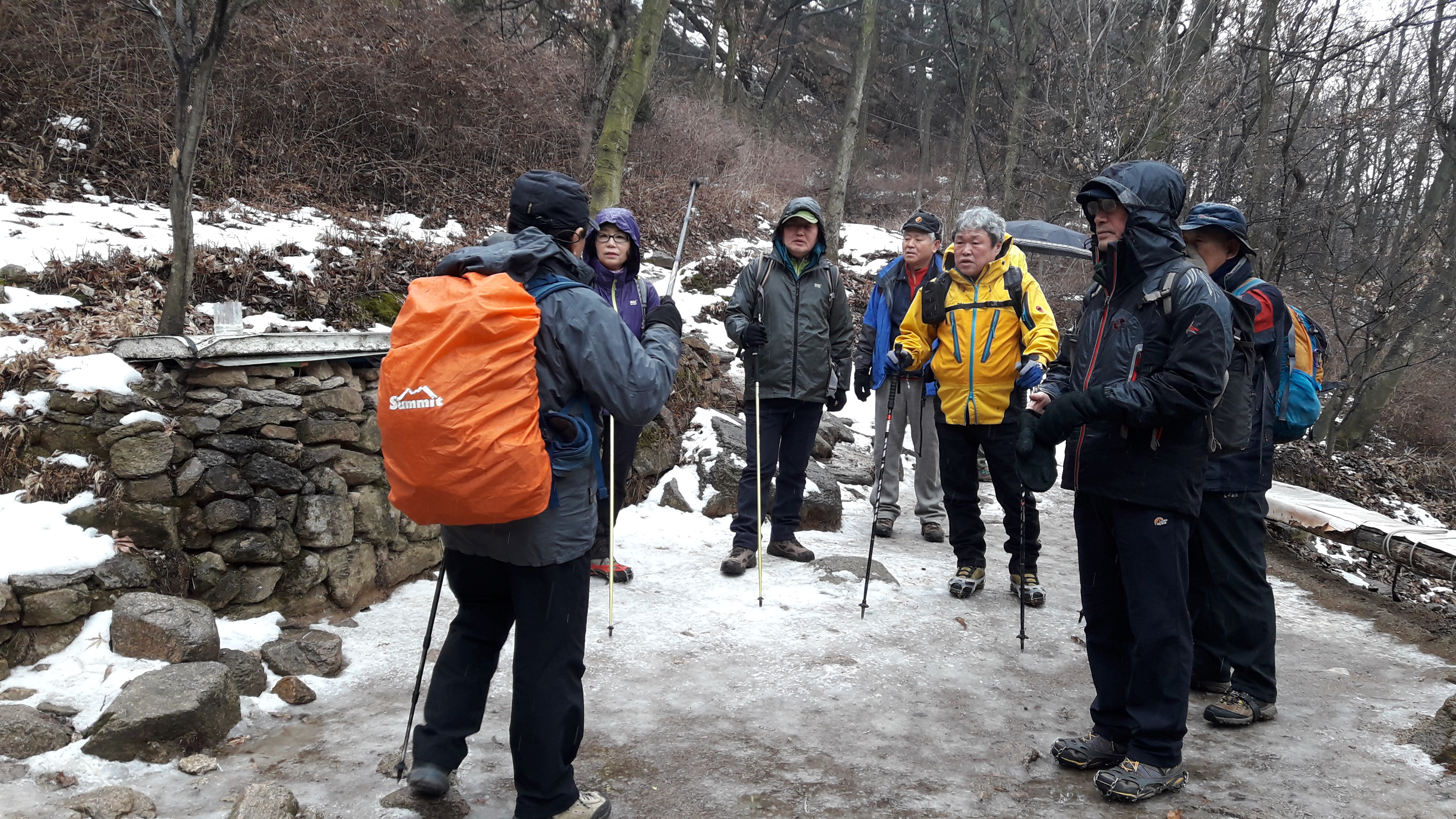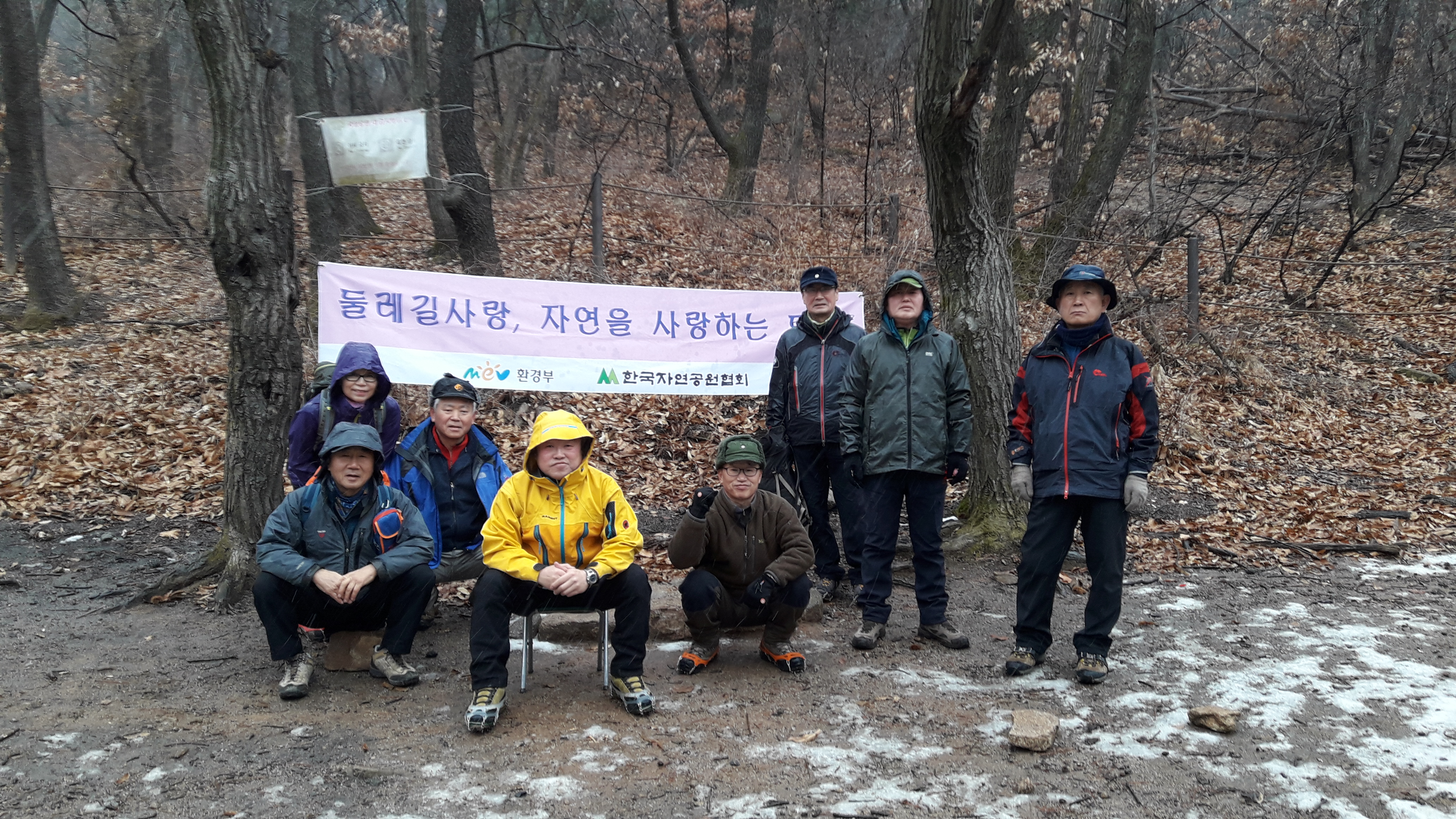 우리협회는 2월 5일(일) 10시부터 조규배회장 등 10여명이 참석한 가운데 2017년 2월 정기 북한산둘레길 행사를 가졌다. 이날 눈이 내리는 날씨에 진행된 코스는 지하철 3호선 녹번역 2번출구 - 서울시우수조망명소 - 탕춘대능선 - 각황사계곡 - 북한산생태공원으로 이어졌다.